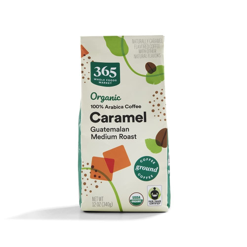Мелена органічна кава від відомої американської компанії "365 by Whole Foods Market, Caramel 340 г. Це органічна кава 100% Арабіка з Гватемали з натуральним ароматом карамелі і дуже приємним смаком з солодкими нотками.