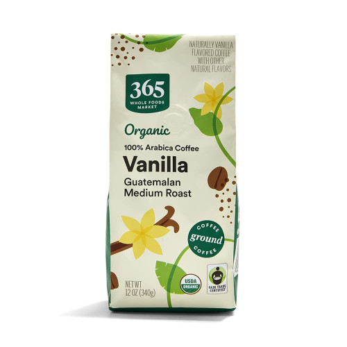 Мелена органічна кава від відомої американської компанії "365 by Whole Foods Market", Vanilla 340 г. Це органічна кава 100% Арабіка з Гватемали з яскравим ароматом ванілі Бурбон і дуже приємним смаком с нотками какао.